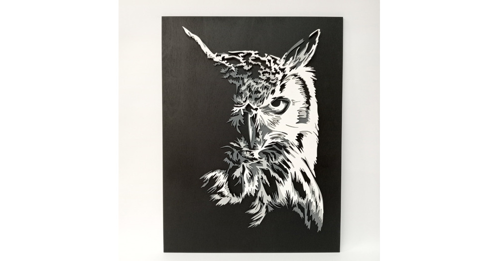 Owl 4 layer decorative panel laser cut files home decor, SVG, DWG DXF Cdr file, multilayer model, 3d