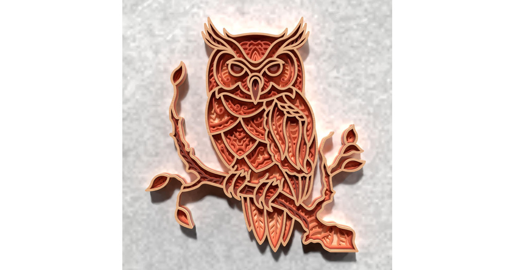 3D Layered Owl Mandala SVG - Laser Cut Woodland Art - Digital Download