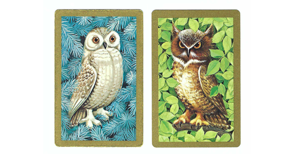OWLS (2) Vintage Single Swap Playing Cards Paper Ephemera