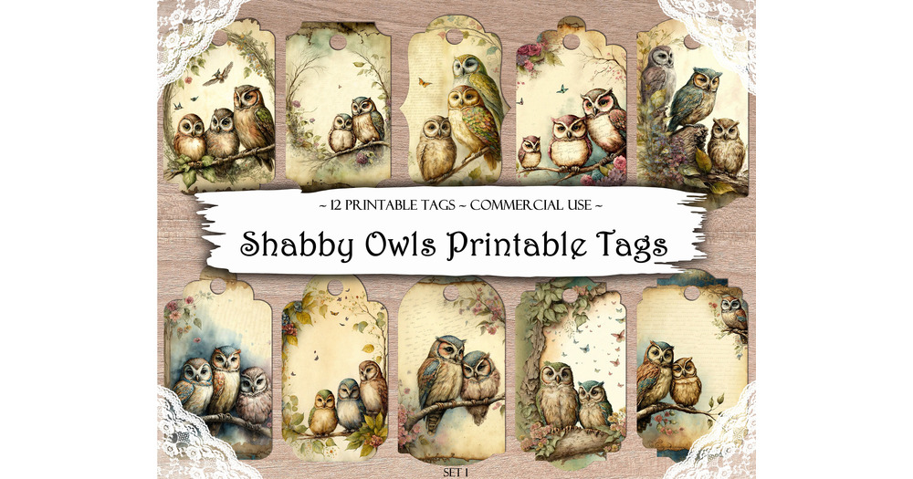 Shabby Chic Owl Printable Tags: Junk Journal Ephemera (Digital Download)