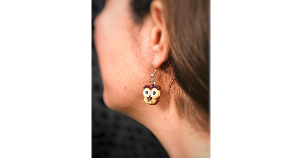 Quilled Owl Earrings: Small Red Paper Earrings, Animal Jewelry