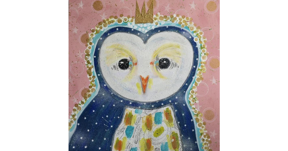 Owl Queen Acrylic Painting: Mixed Media Whimsical Wall Art