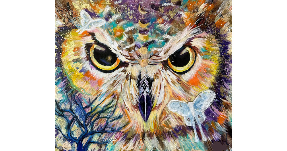 Light in the darkness - owl original oil painting on canvas, spirit animal, shamanic art, magical pa