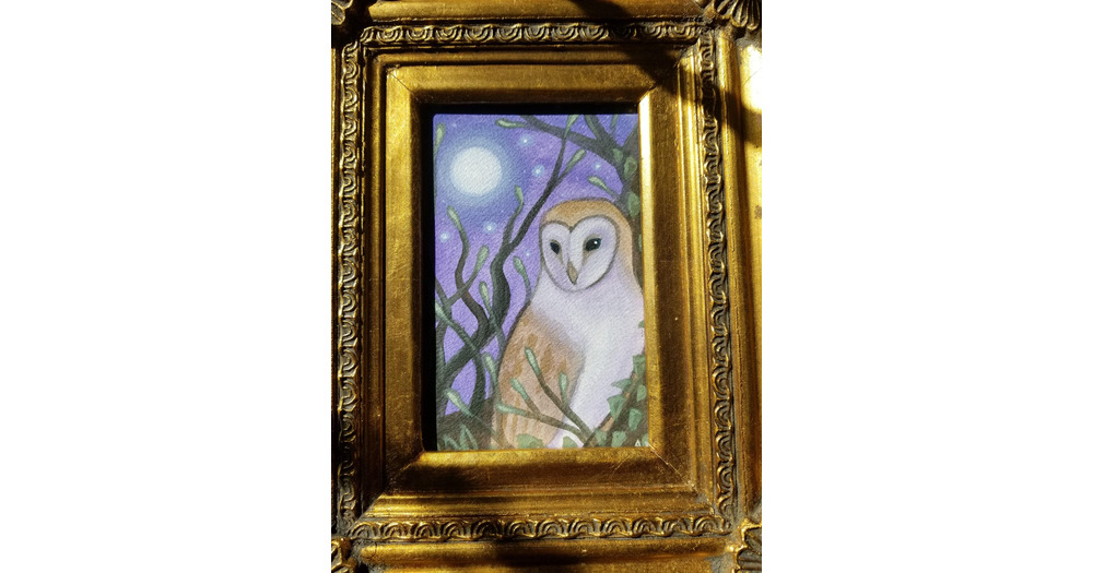Woodland Owl - Original Painting,  Whimsical,  Forest, Faery,  Elven, Fantasy, Faerie,  purple,  For