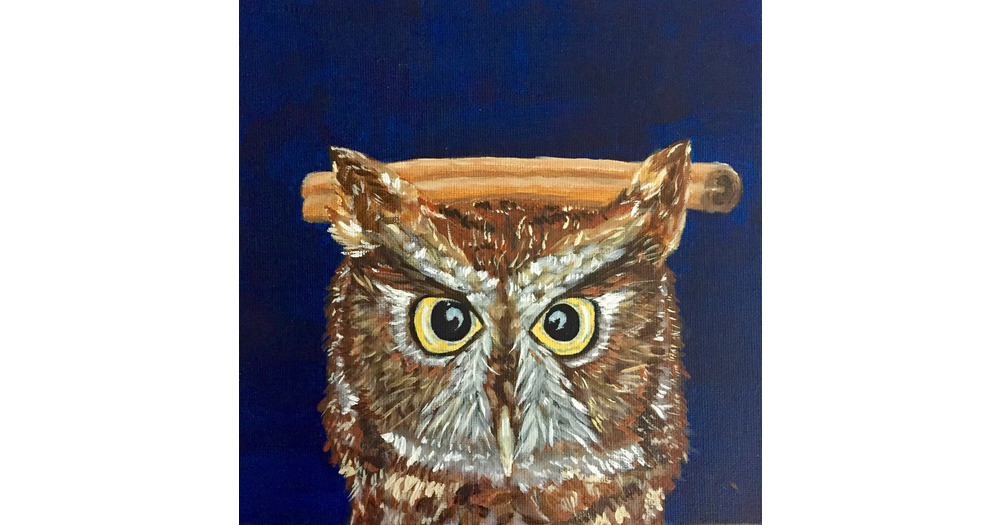 Owl cinnamon painting, Owl painting, Handmade original animal painting, blue painting, animal art, h