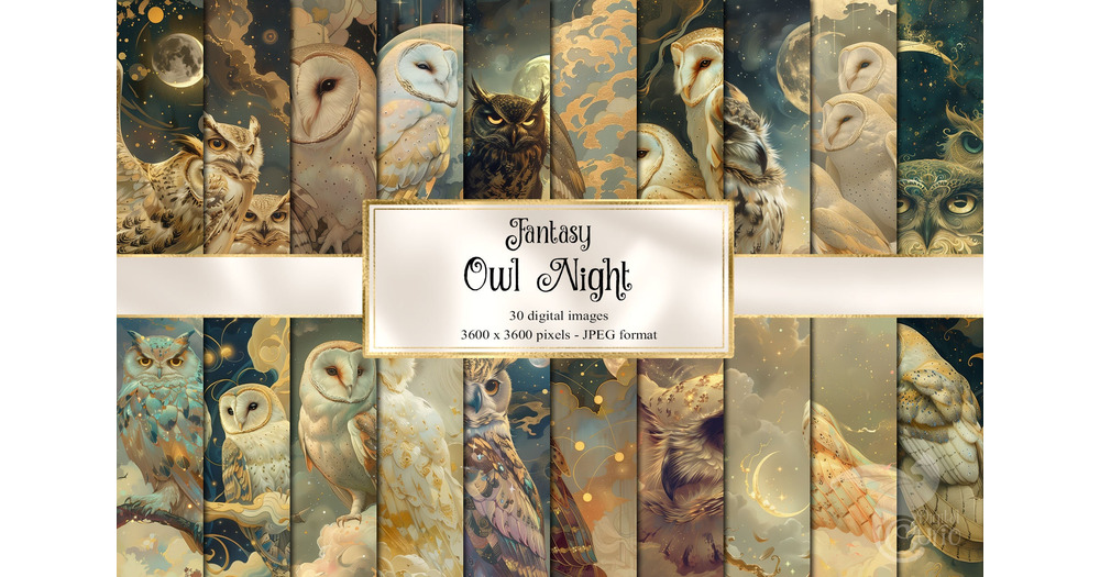 Fantasy Owl Night Digital Paper, celestial digital paper fantasy scrapbook pages printable paper ins