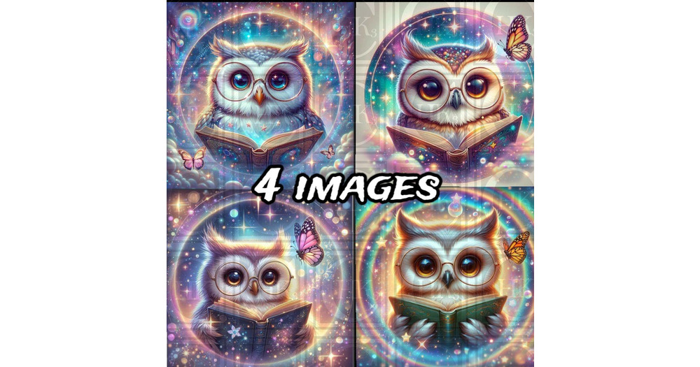 Owl reading - 4 images - Set 1 - AI Art digital PNG file only - tumbler wrap, wind spinner, coaster,