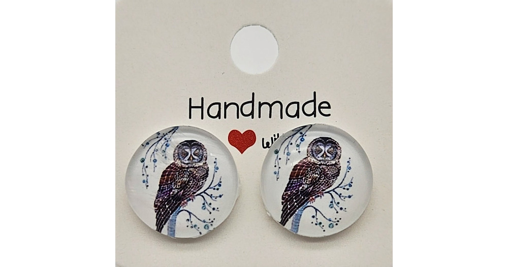 Barn Owl Stud Earrings- Handmade, Round, Hypoallergenic, SKU60