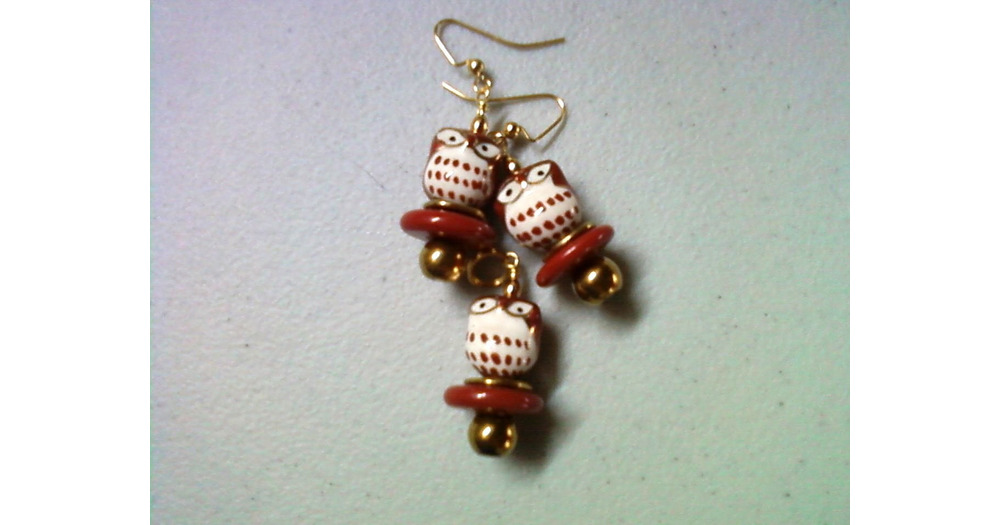 Brown and White Owl Pendant and Earrings (0801)