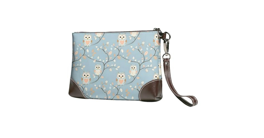 Cute Owl Heart Print Wristlet Clutch Purse for Women, Leather Wristlet Wallet Purses and Handbags