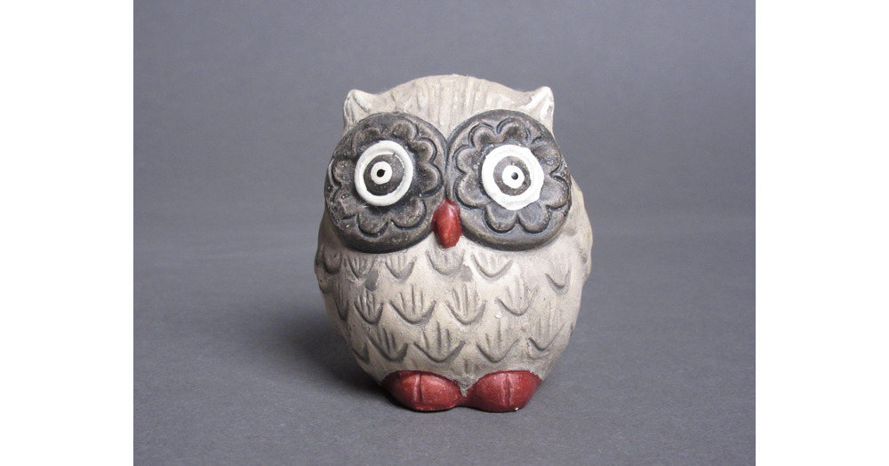 Vintage Ceramic Owl Figurine, Miniature Matte Chubby Owl, Gray, Wide-Eyed Ceramic Owl, Bone China, C