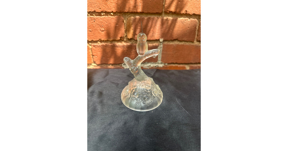 Fenton Clear Frosted Cabbage Rose Pattern Owl on Branch Figurine