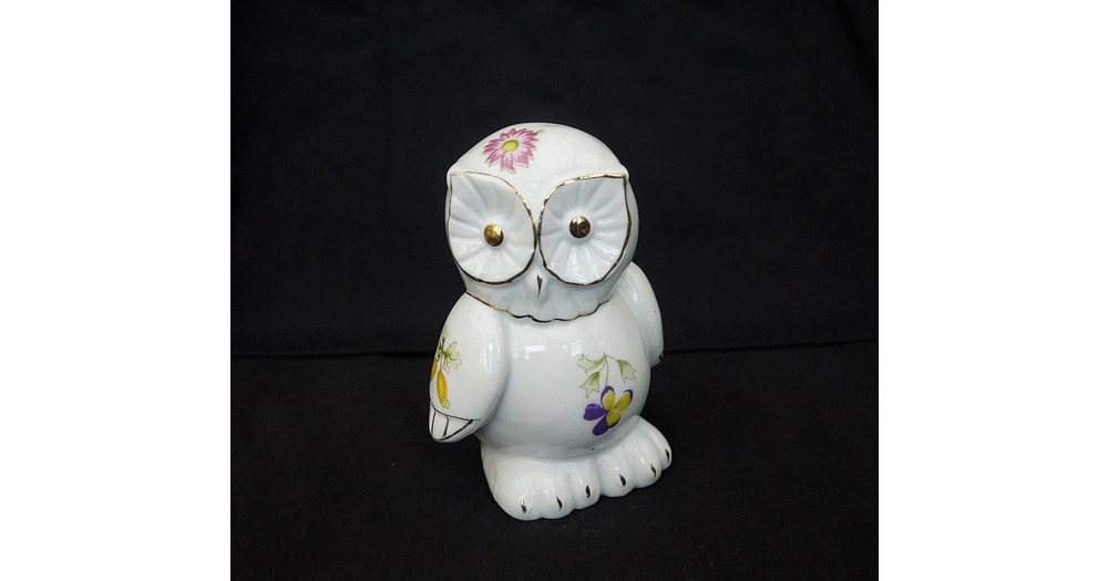 Vintage RFA Bone China Owl Figurine: 24k Gold Floral Decor
