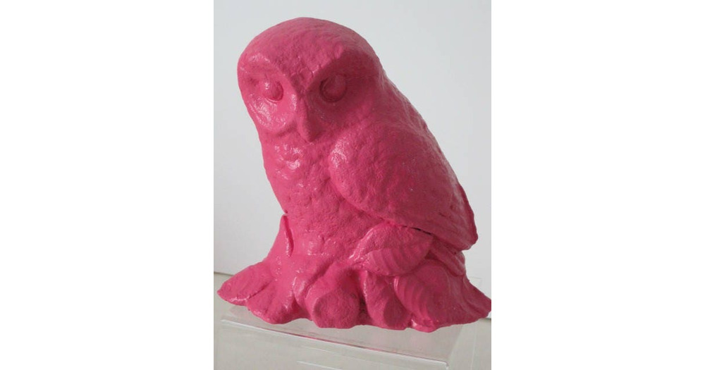 vintage Very Berry Pink Owl in Chalkware