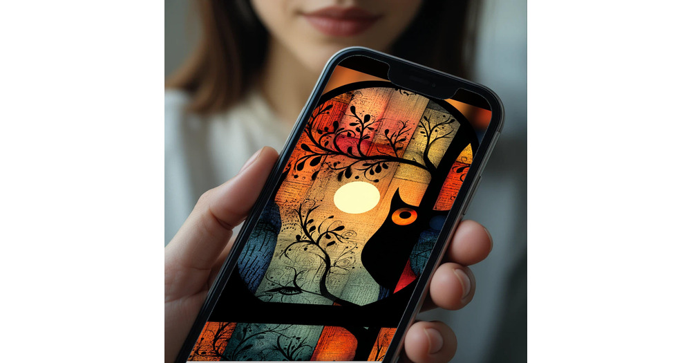 Abstract Owl Phone Wallpaper: Watercolor Forest Design (Digital Download)