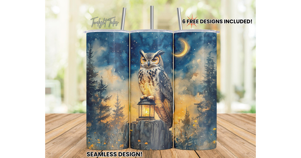 Mystical White owl 20 oz Skinny Tumbler Sublimation Design, Forest scene owls Digital Download PNG I