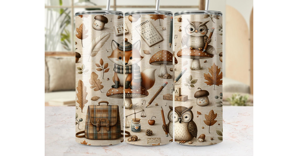Autumn Animals Tumbler Design: Fox, Owl, Acorn - 20oz Skinny Tumbler (PNG Digital Download