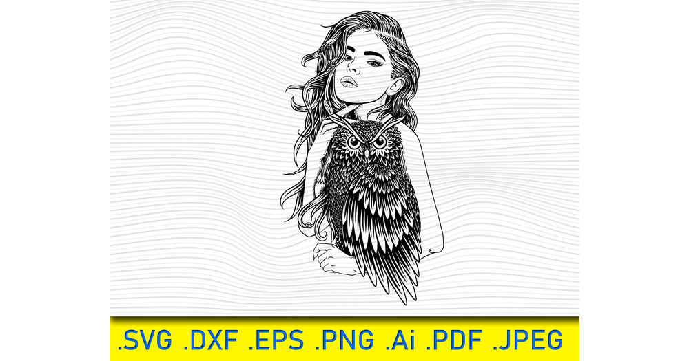 Girl and Owl Sketch: Tribal Tattoo SVG, Cricut, Sticker (Digital File)