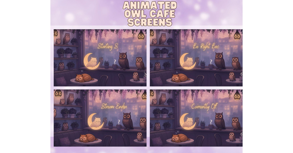 Owl Cafe animated Twitch Screens | Cozy Owl Package | Animated Twitch Overlay | Stream Paket |