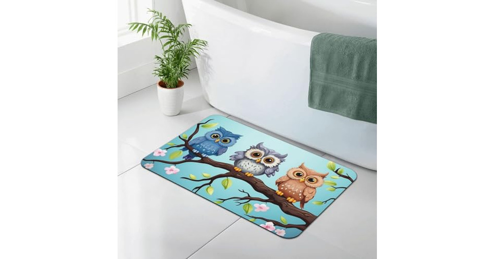 Stone Bath Mats for Bathroom Diatomaceous Earth Bath Mat Super Absorbent Floor Mat Owls on a Branch