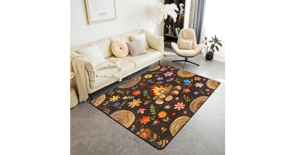 Feelyou Campfire Fun Decorative Carpet Tree Stump Area Rug 3x5 for Boys Girls Children Woodland Tree