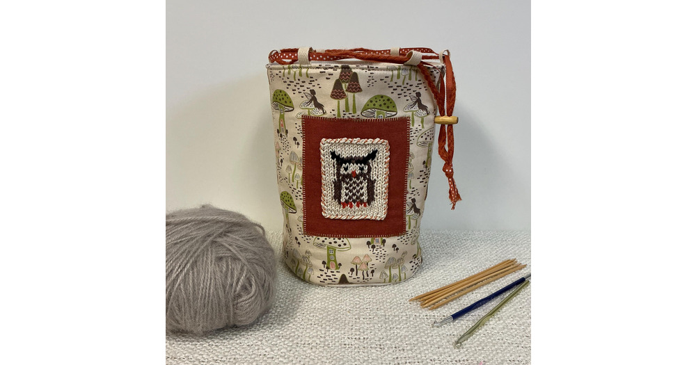 Owl Drawstring bucket bag / small size / knitting or crochet