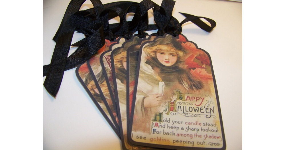 Halloween Tags Witch Tags Owl & Raven Vintage Style Tags  - Set of 6