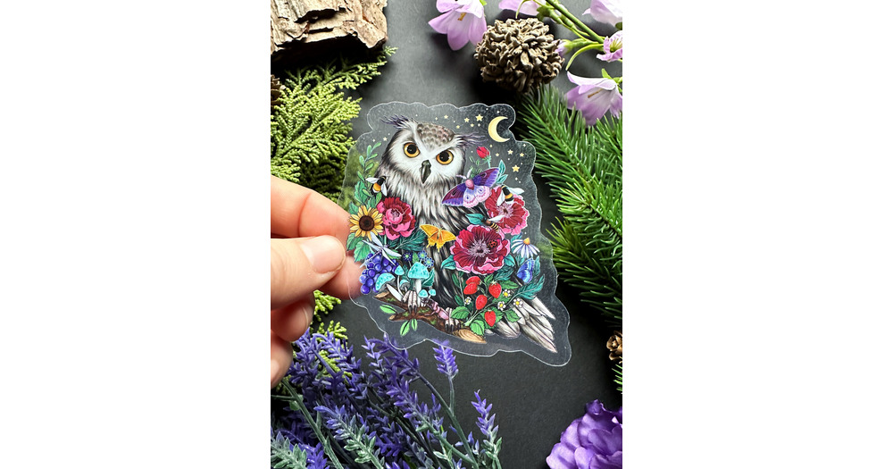 Beautiful transparent vinyl sticker- colorful forest owl - waterproof sticker