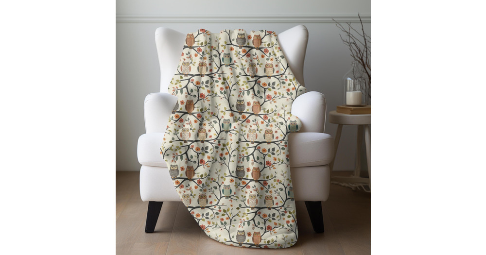 Woodland Owl Blanket Forest Birds Throw Owl Lover Gift Rustic Cabin Decor Owls On Branches Blanket O