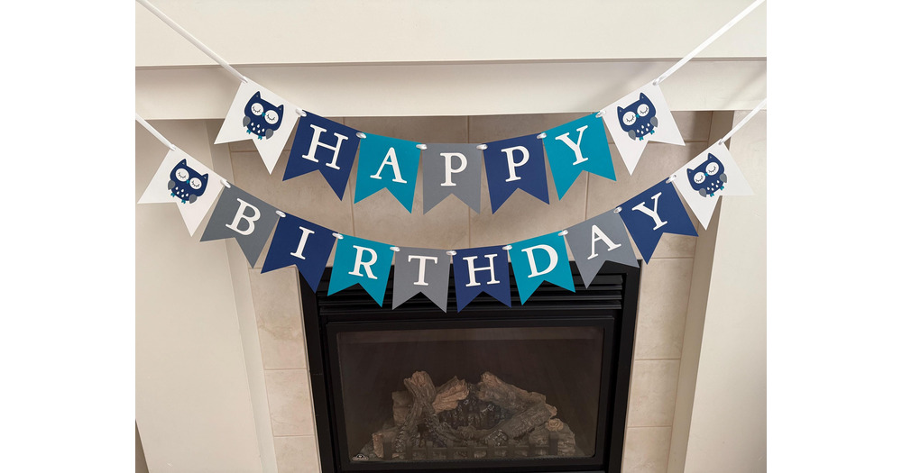 Owl Birthday Banner: Blue, Teal, Grey Party Decor