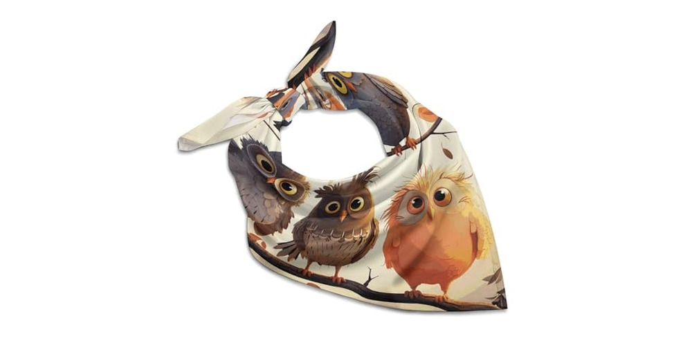 LLUTSNTH Silk Like Head Scarf for Women Square Breathable Neck Scarf Owls Birds Satin Bandanas Fashi