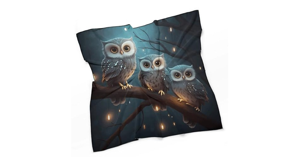 LYHVSFJW Square Silk Head Scarf Owl on Tree Fashion Silk Feeling Scarf Long Lightweight Shawls for W
