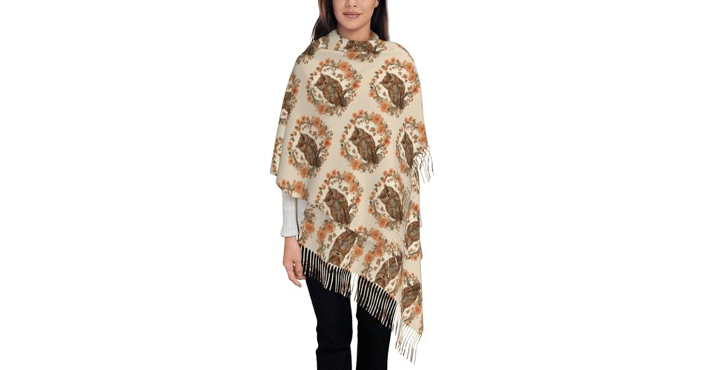 Large Owl Beliefs Scarf, Faux Cashmere Long-Pile Tassel Scarf, Women'S Oversized Shawl Blanket