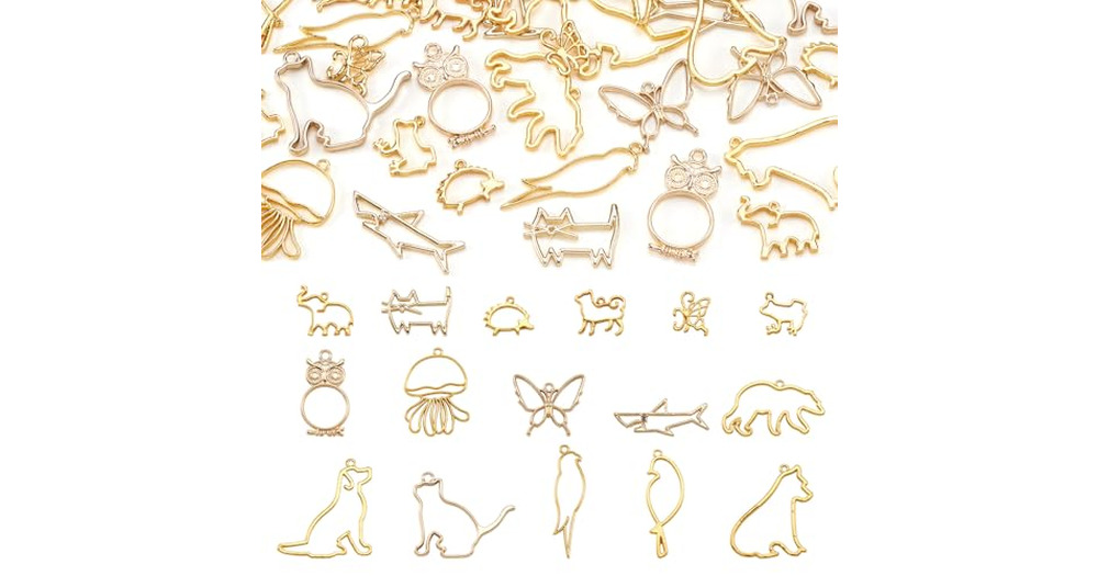 Pandahall 32Pcs Animal Theme Open Back Bezel Alloy Pendants 16 Style Golden Butterfly Owl Cat Dog Bi