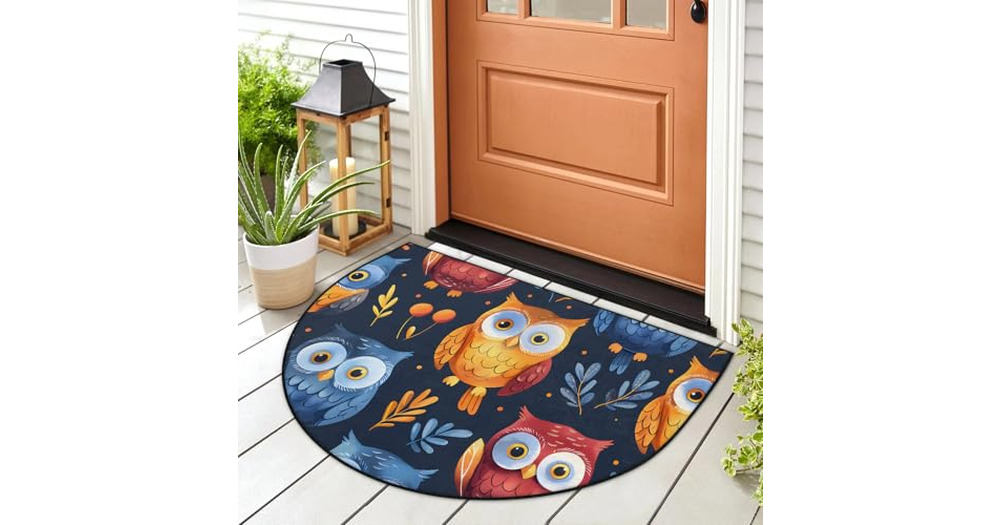 LCLJJDMBM Colorful Owl Half Round Door Mat Welcome Mat with TPR Backing 24x36 Inch Non Slip Bath Rug