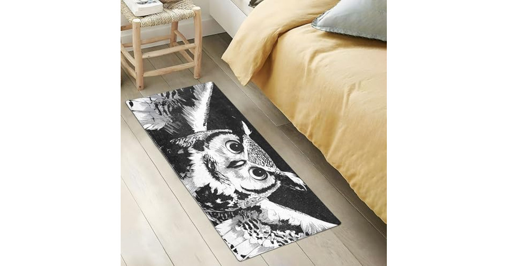 YMGQYJ Small Area Rug Owl Black White Print 39x20 Inch, Anti Slip Water Absorbent Plush Fabric Floor