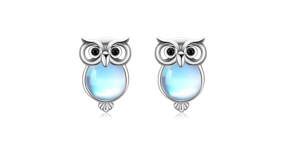 Cuoka Owl Moonstone Earrings 925 Sterling Silver Hypoallergenic Small Owl Stud Earrings Jewelry for
