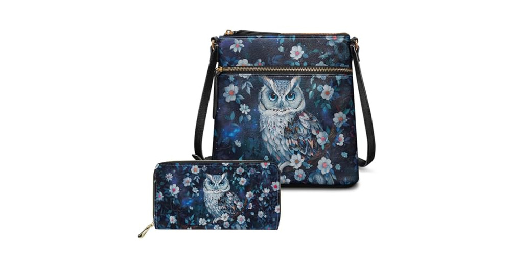 YUVAMAGIMO Blue Owl Leather Crossbody Bag with Wallet for Women Small Shoulder Bag Set of 2 Soft Cro