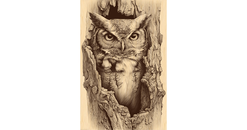 Majestic Owl Engraving PNG | Rustic Woodcut Wildlife Art | Digital File for CNC Laser Engraving | Gu