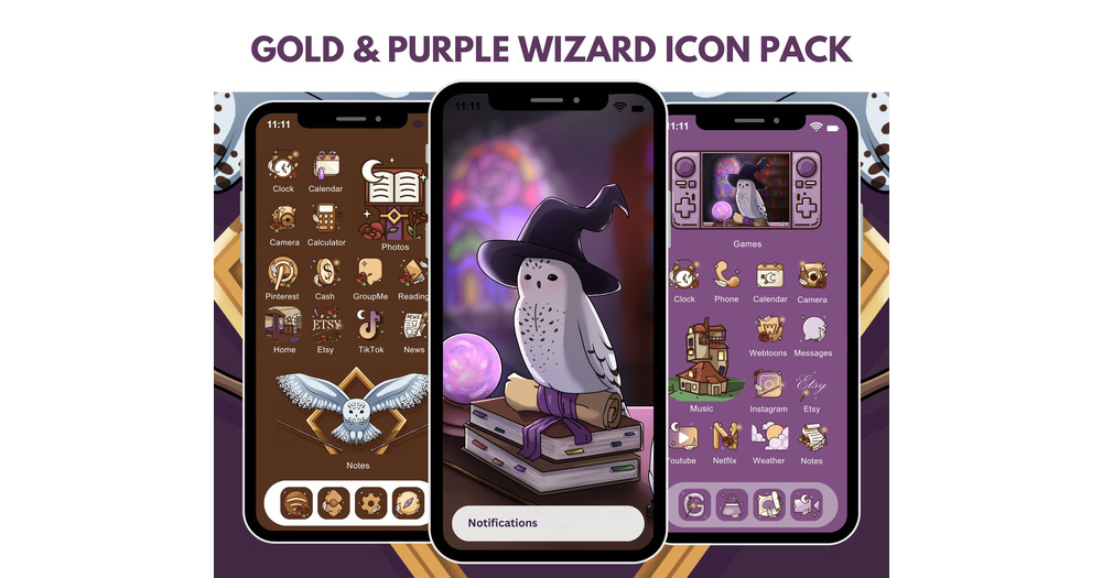 Cute Owl Wizard Icons for Phone Dark Academia Aesthetic Wizardry App Pack Brown Snowy Wizarding Wall