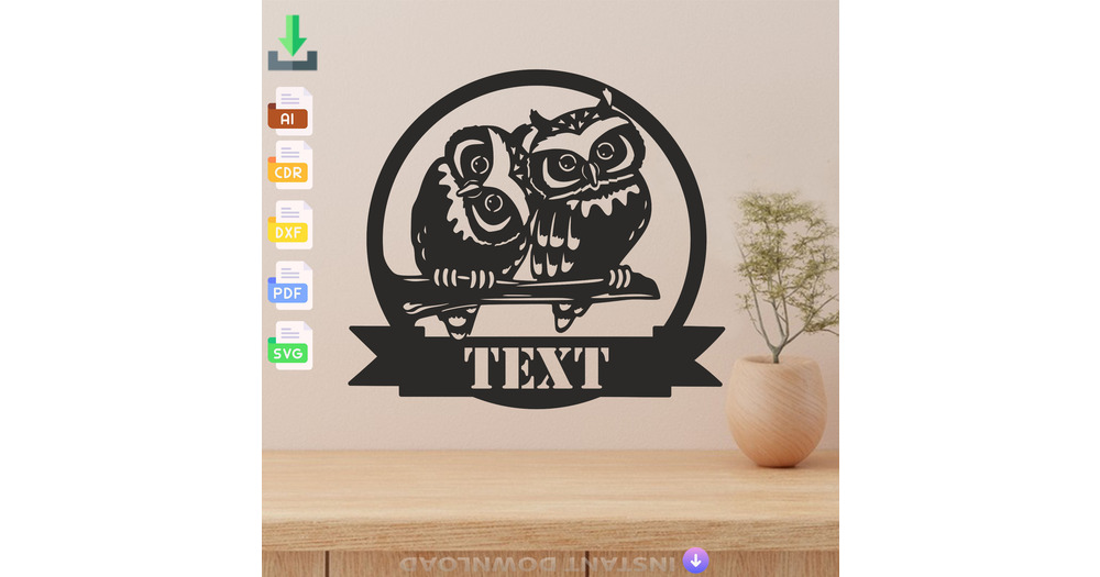 Owl Monogram SVG DXF Files: Laser Cut CNC Template (Digital Download)