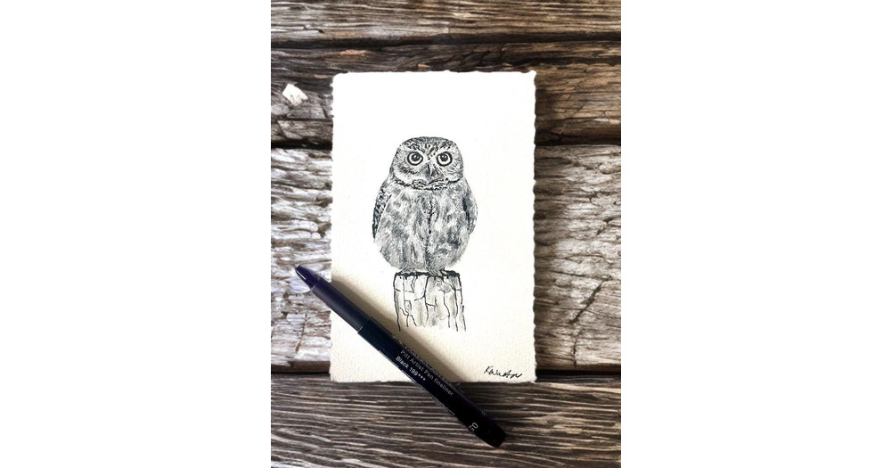 Owl Portrait, Small Original Ink Art