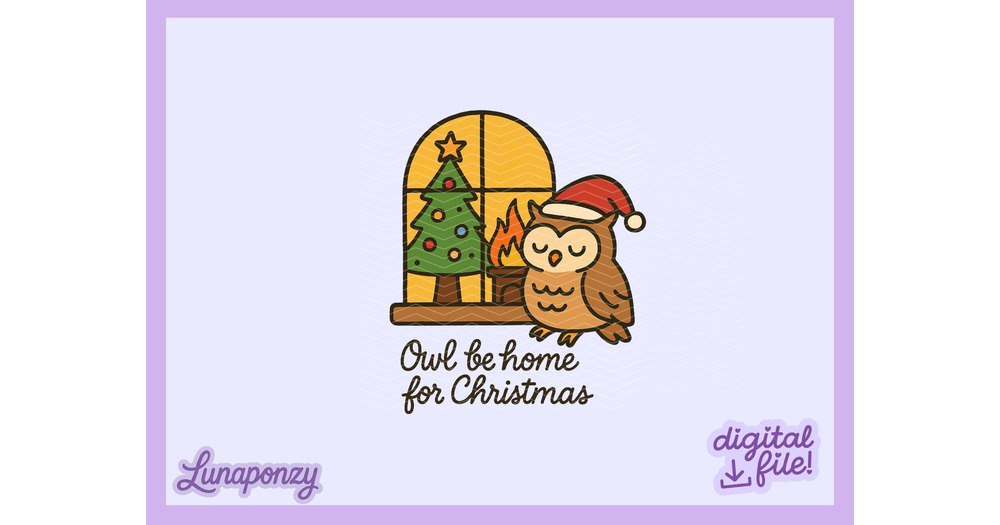 Owl Be Home for Christmas PNG | Cozy Owl by Fireplace | Whimsical Holiday Clipart | Cottagecore Chri
