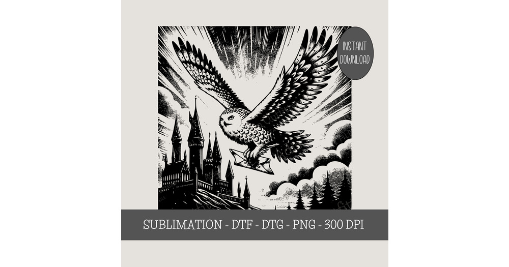 Magic Owl Post PNG, Wizard Castle School of Witchcraft and Wizardry, Mystical Vintage Style Design,