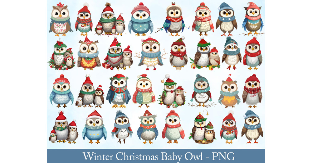 Cute Winter Christmas Baby Owl PNG | Adorable Holiday Owl Clipart | Christmas Sublimation Design
