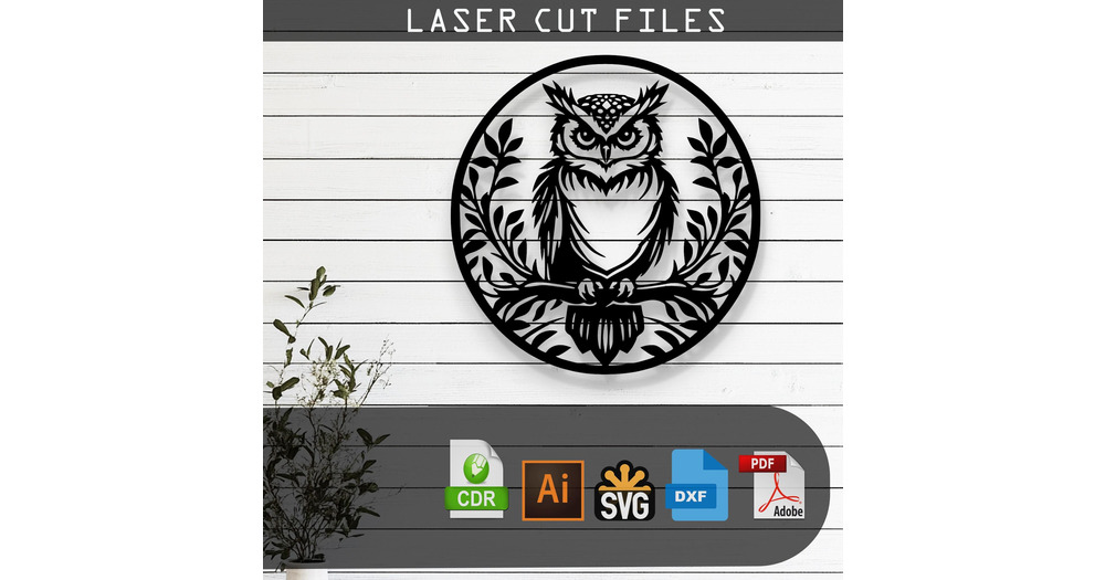 Owl on Tree Branch Silhouette – Glowforge, Cricut, Laser Cut File, Metal Wall Art, Wood Decor,