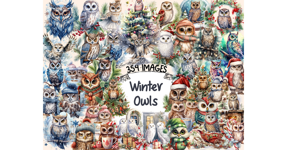 Winter Owls Watercolor Clipart Bundle: Snowy Christmas Graphics (Digital Download)