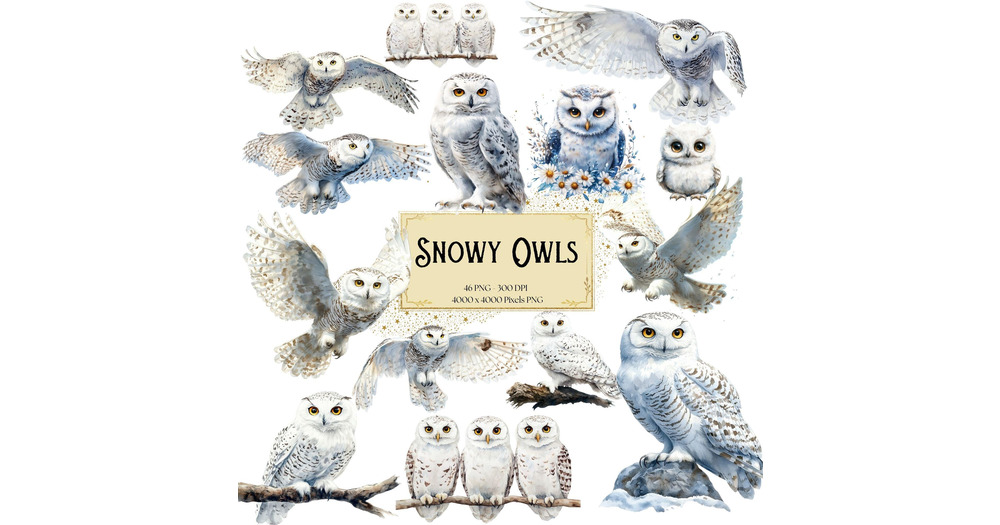 Snowy Owl Clipart, Floral Snowy Owl Clipart, Baby Snowy Forest Owl Clipart, Baby Shower Birthday PNG