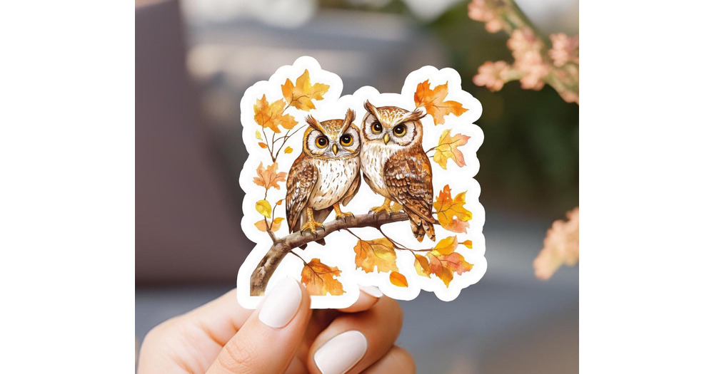 Fall Owls Vinyl Sticker: Water Resistant Laptop Decal