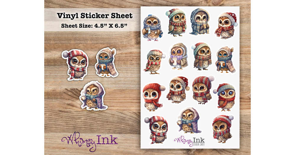 Snow Owls Vinyl Sticker sheet | Great for Planners, Journaling, Scrapbooking, Bullet Journals, Etc